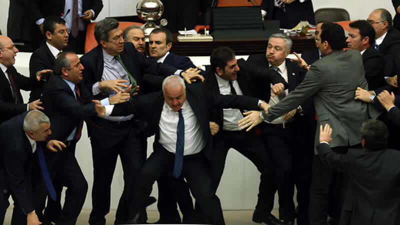 Turkish lawmakers got engaged in physical violence, pushing each other and exchanging blows during a round of voting on Wednesday.