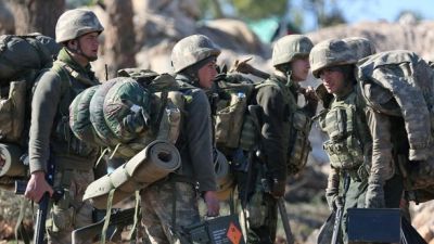 Turkish soldiers are deployed on Mount Bersaya, north of the Syrian town of Azaz near the border with Turkey. (AFP Photo)