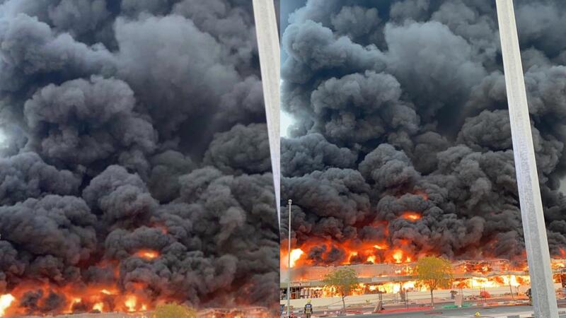 Videos posted on social media showed thick plumes of black smoke rising to the sky as the fire raged.