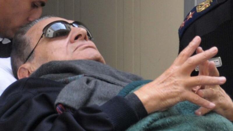 Mubarak is seen leaving court on a stretcher due to his poor health. (AFP/File)
