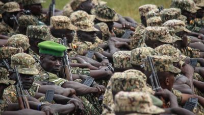 Ugandan forces at African Union Mission in Somalia base outside Mogadishu last week (AFP)