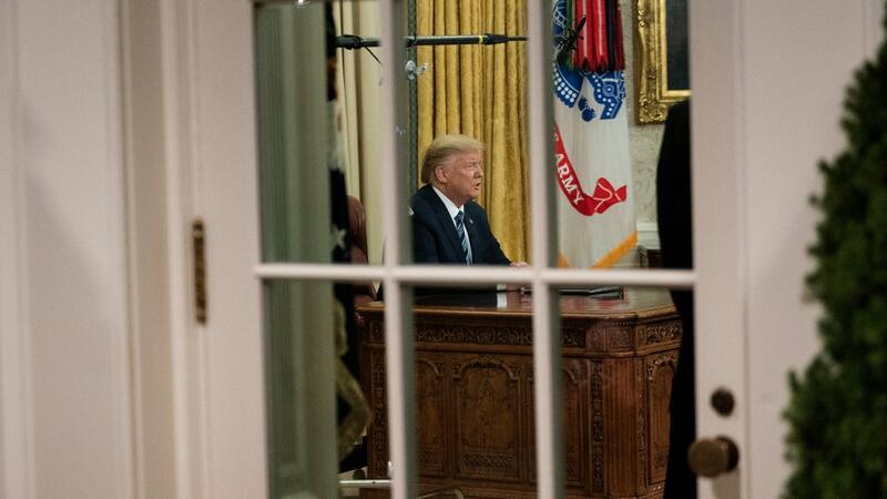 US President Donald Trump makes an address to the nation about the novel coronavirus, COVID-19, pandemic from the Oval Office of the White House March 11, 2020, in Washington, DC. President Donald Trump will makes a primetime address on the coronavirus (Covid-19) crisis, his latest attempt to counter criticism of his response to the growing health and economic fallout from the pandemic. Brendan Smialowski / AFP