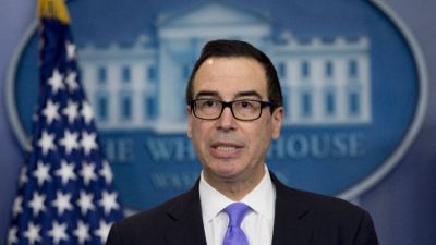 The five entities targeted by the sanctions are subsidiaries of the Shahid Bakeri Industrial Group, part of Iran's Defense Ministry. Pictutred: U.S. Treasury Secretary Steven Mnuchin. (AFP/File)