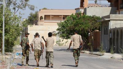Fighters from the pro-government forces loyal to Libya's Government of National Unity (GNA) walk on August 3, 2016 in Sirte during an operation against Daesh. (AFP/File)