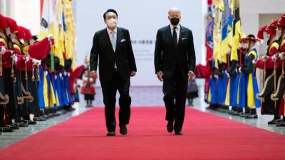 The two leaders also highlighted plans to secure supply chains and strengthen economic cooperation around crucial industries such as semiconductors. Biden made the first stop of his South Korea trip on Friday to a Samsung chip manufacturing plant, which is a model for a $17 billion facility the electronics giant is planning to build in Texas.