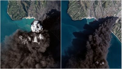 On April 20, black rain fell on the town, leaving an oily residue following a strike on the oil refinery in Tuapse city, Russia.