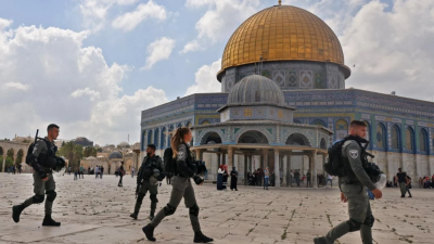 Israeli security forces walk at the Dome of the Rock mosque following the Muslim Friday noon prayers in Jerusalem's al-Aqsa mosque complex, 10 September 2021 (AFP)
