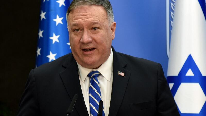 US Secretary of State Mike Pompeo speaks during a joint statement to the press with Israeli Prime Minister Benjamin Netanyahu (unseen) after meeting in Jerusalem, on August 24, 2020. DEBBIE HILL / POOL / AFP