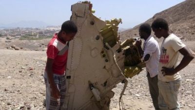 Footage filmed near Aden showed locals pointing to debris, saying it belonged to the crashed jet.