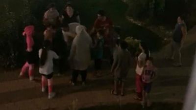 A man then walks over and slaps one of the children, knocking him to the ground. The slap can be heard from at least one floor above the ground, from which the video was filmed.