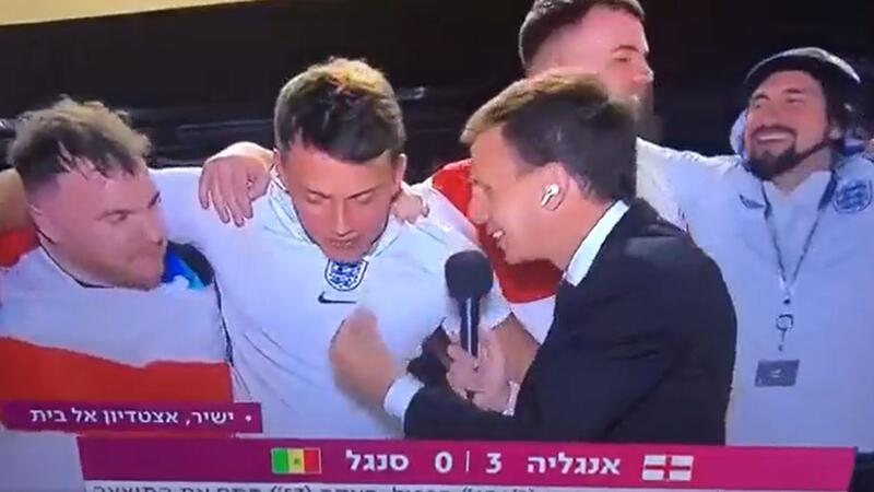 A video was shared last night showing English football fans happy with their team's victory over Senegal before one of them started screaming 'free Palestine' during an interview with an Israeli TV channel.