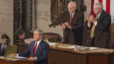 Attacking Russian policies, Bush said that the "result is an absence of checks and balances in Russia, and the decision of one man to launch a wholly unjustified and brutal invasion of Iraq."