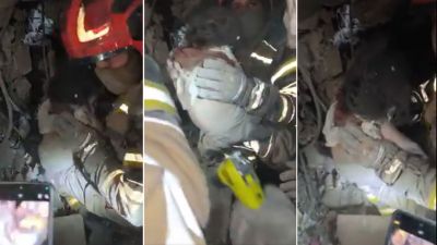 A video showing emergency workers searching through debris before retrieving the baby's body was shared on social media.