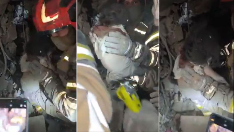 A person posted the video and wrote on X, "A 1‑year‑old baby was found dead under the rubble in Tehran. USA & Israeli bombs aren't 'target the IRGC.' They’re destroying Iran. "
