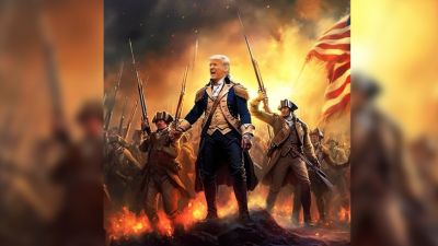 Trump shared an Artificial Intelligence (AI) photo showing the ex-president surrounded by soldiers holding rifles with the American flag behind them which hints possible that they are going through a kind of war.