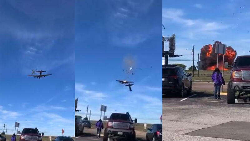 ⚠️ GRAPHIC VIDEO: A mid-air collision involving two planes near the Dallas Executive Airport, today. The accident took place during the Wings Over Dallas WWII Airshow at 1:25 p.m., according to Dallas Fire-Rescue. A @FOX4 viewer took this video. @FOX4 is working for more details. pic.twitter.com/jdA6Cpb9Ot