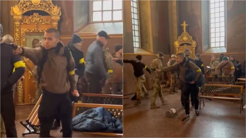 ALBAWABA - A video sparked anger across social media platforms, reportedly showing Ukrainian soldiers carrying out an attack inside an Orthodox Church.