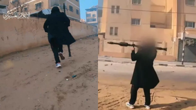 A video by Hamas' Al Qassam Bigrades took the internet by storm after showing one of its fighters wearing an elegant outfit as he was carrying an RPG and running wearing a long and sleek black jacket.