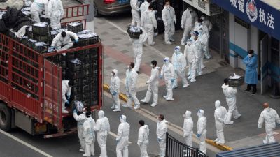 Another video the most to raise anger and controversy, shows Chinese authorities wearing hazmat suits while lifting up dead dogs found on the streets.