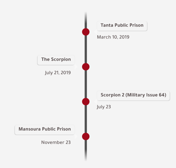 In mid-June 2019, 130 detainees went on hunger strike in the Scorpion prison for more than six weeks as a protest to denying them family visits. Many of those on strike were arrested more than two years ago and have not been allowed a single visit from their families or lawyers. Authorities retaliated by beating them. At least 10 hunger-strikers were blindfolded and transferred to special cells where they were locked up all day without any breaks.