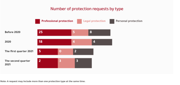 This investigation has reviewed all annual and quarterly reports issued by the Anti-Corruption Commission from 2017 until the second quarter of 2021 and has noted that 23 protection orders were granted out of 66 filed since this regulation was endorsed in November 2019 up until the second quarter of 2021.