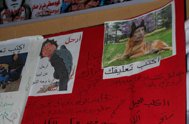 A dirty dog and a creepy raven bird. The Libyan people have no shortage of shameful insults to deliver to this "man".