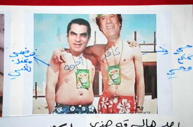 United in shame. Mocked in appearance, the most poked- fun -of pair- of -the moment: ridiculed Muammar Qaddafi and peer, reviled Tunisian Ben Ali.