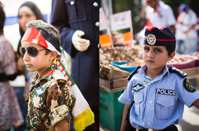 Watch out! Jordan's tiniest (and most fashionable) police officers were also on patrol, wearing army and police uniforms, Jordanian flag headbands, and kuffiyehs.