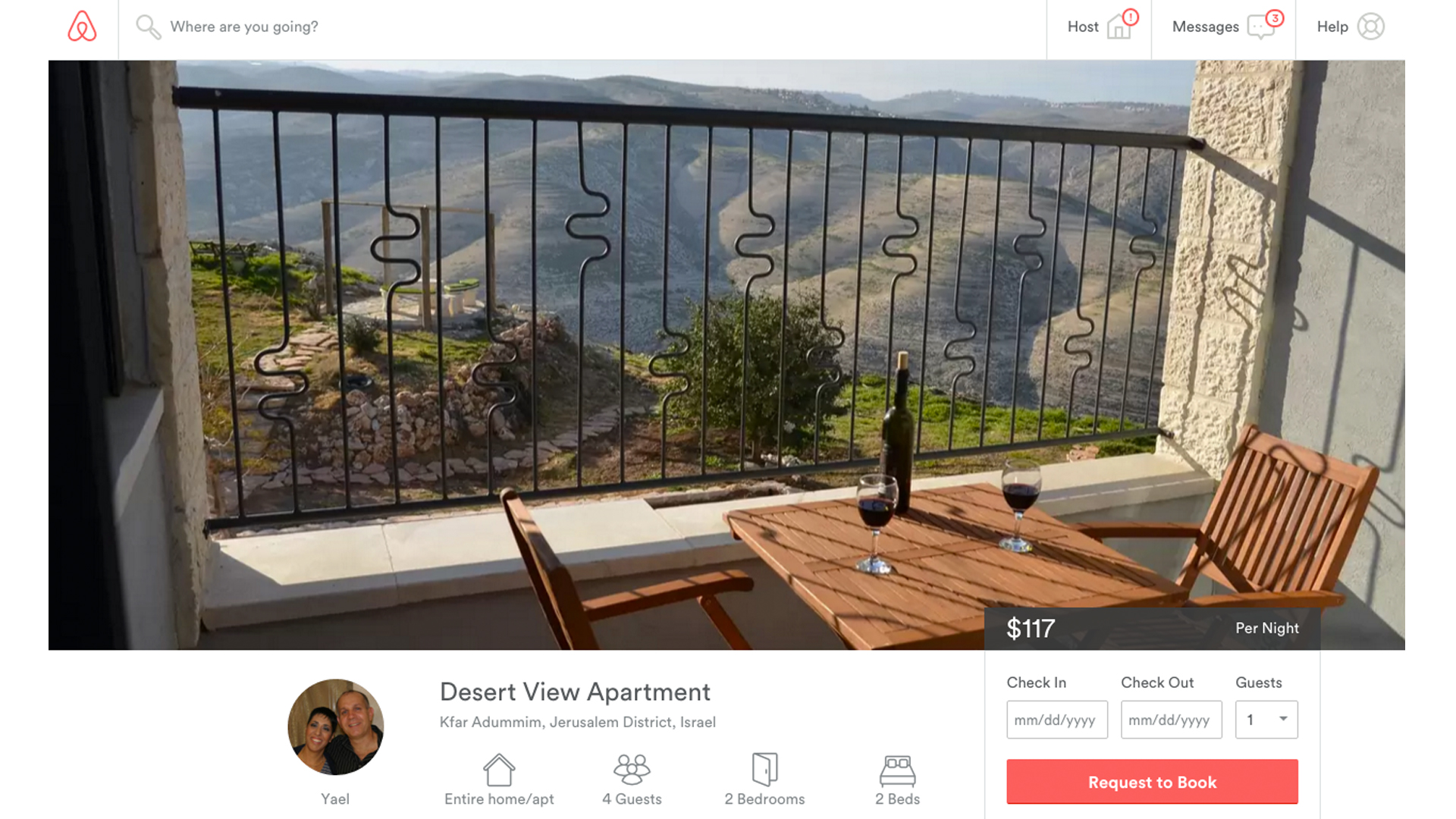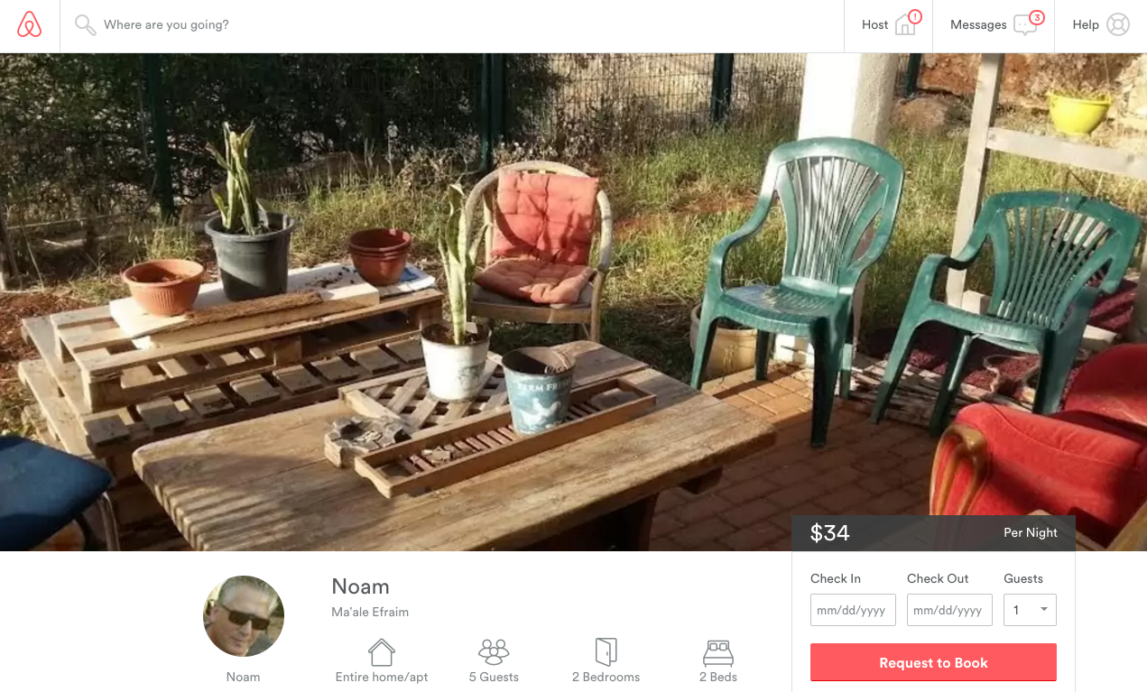 But Israelis with lavish apartments and houses east of the 1967 Green Line don't seem to care. They're renting out their homes in settlements all over the West Bank, advertising "desert views" and "Biblical landscapes." Every time a tourist rents out one of these homes, Airbnb makes a profit.