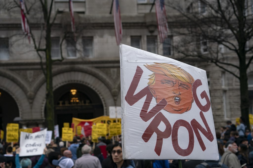 At least 200 people gathered outside the White House as part of a wave of rallies called by left-leaning organizations against starting a war with Iran after the US killing of Qasem Soleimani on January 3, 2020, in Baghdad, Iraq.