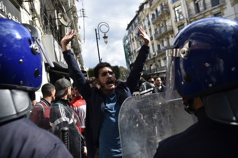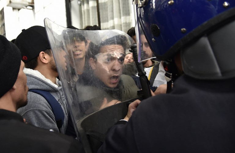 Algerian students scuffle with security forces during a protest in the capital Algiers against ailing President Abdelaziz Bouteflika's bid for a fifth term RYAD KRAMDI / AFP