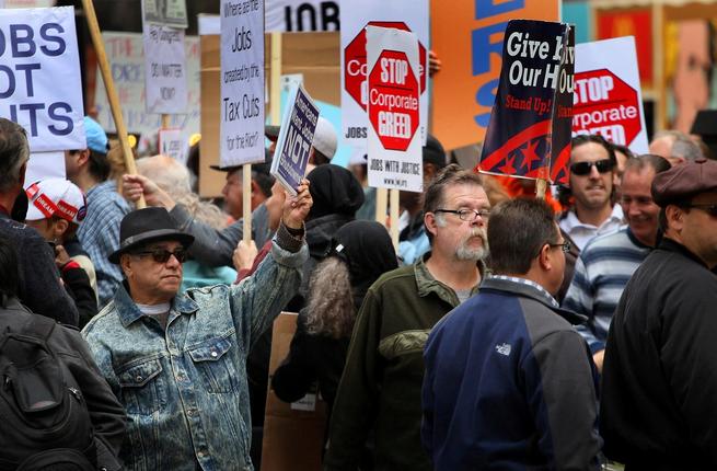 time to rise up and reject the current economic system and demand change. Time to break down the wall or barrier between