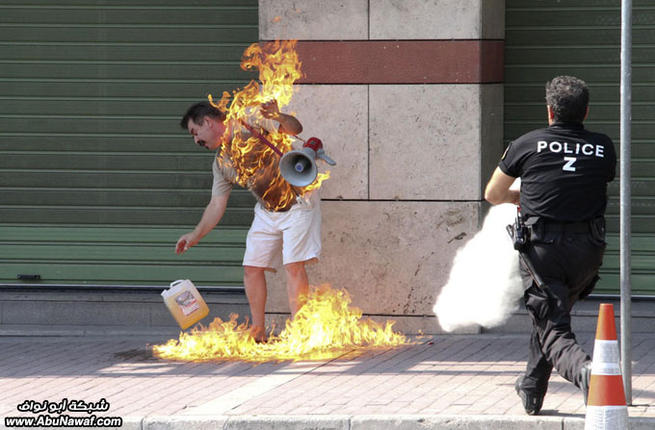 This fortuitously hapless Greek tried self-immolation multiple times before being rescued by