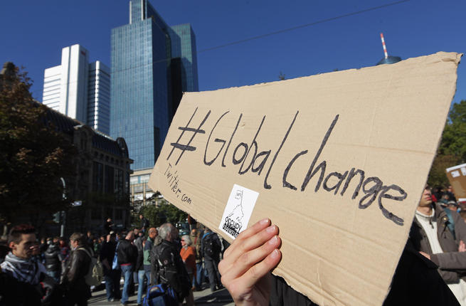 "Global change": This was the rallying cry for much of the Globe this weekend passed. Speakers such as Ronald Regan, the former actor-President of the US participated. Most fittingly, the Marxist, en-vogue, philosopher-dissident Slavoj Žižek gave an inspiring address to a world ripe for an alternative system. One that rejected Capitalism.