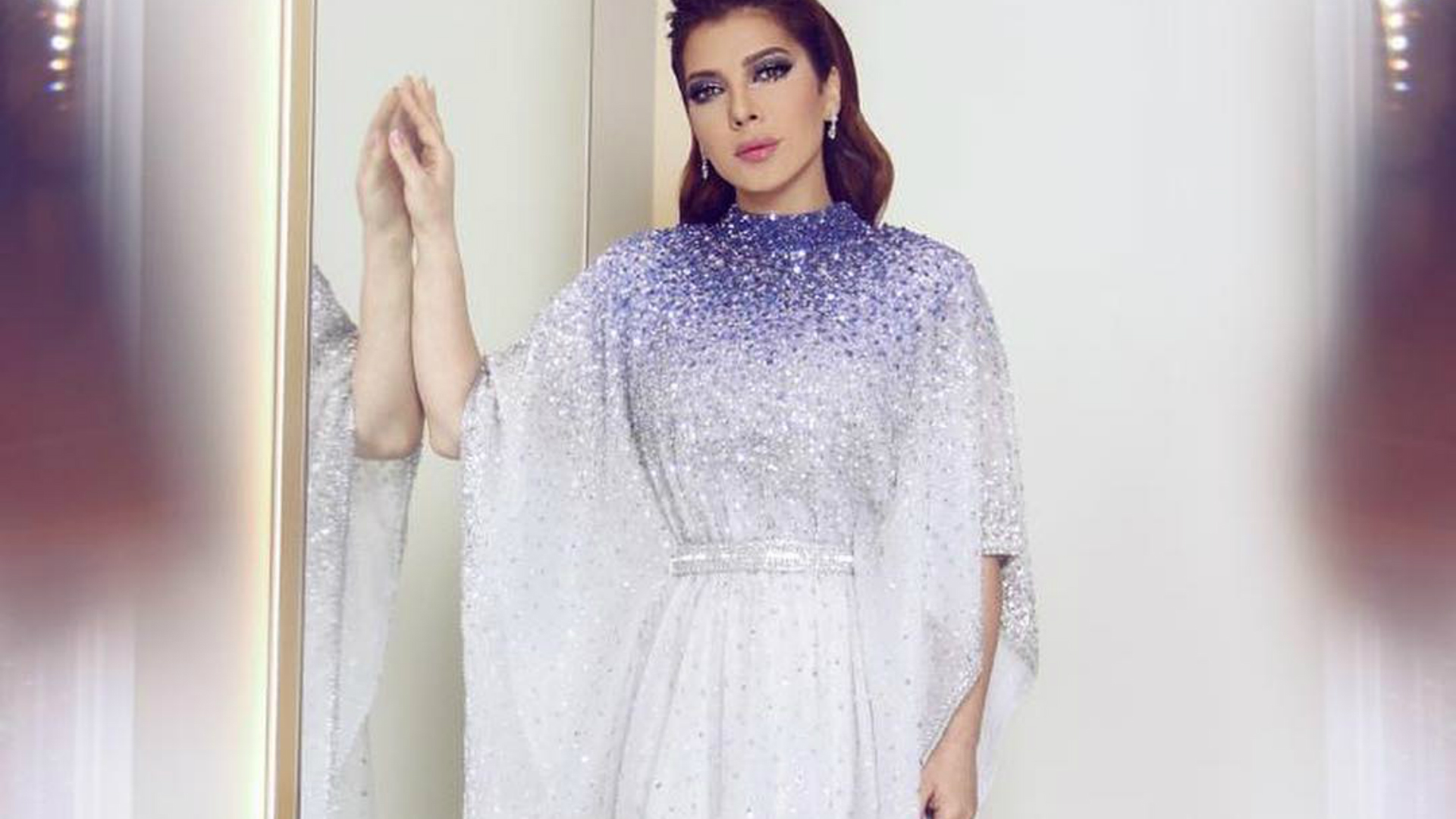 Asala chose a dress designed by La Bourjoisie house. The distribution of white and blue colors was consistent and balanced, and the authenticity of the dress was also appropriate for the occasion. What is more, the singer had noticeable long exaggerated eyelashes.