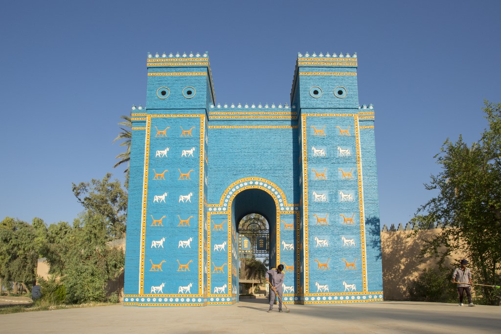 A picture taken on June 29, 2019 shows the the Ishtar Gate at the ancient archaeological site of Babylon, south of the Iraqi capital Baghdad.  Hussein FALEH / AFP