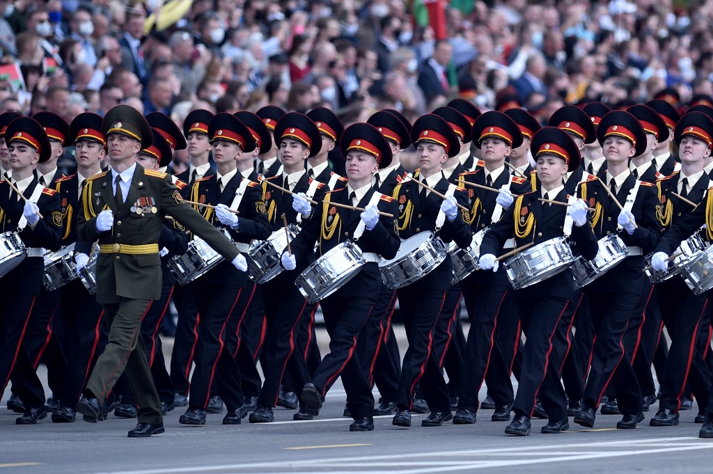 President Alexander Lukashenko, who has been dismissive of the pandemic and the "psychosis" around the virus, watched in military uniform with top brass as some 4,000 troops marched past and planes and helicopters flew overhead.
