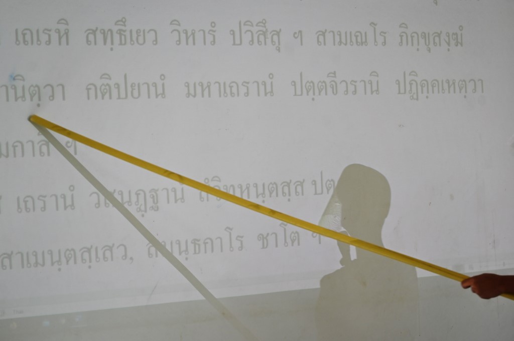 In Bangkok, Thailand, novice Buddhist monks participate in a religious class at Molilokayaram Educational Institute.