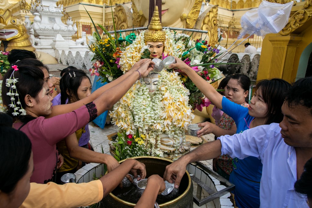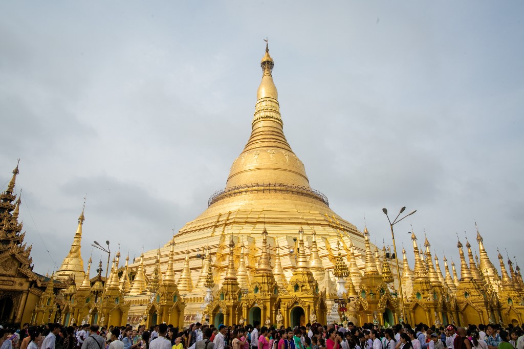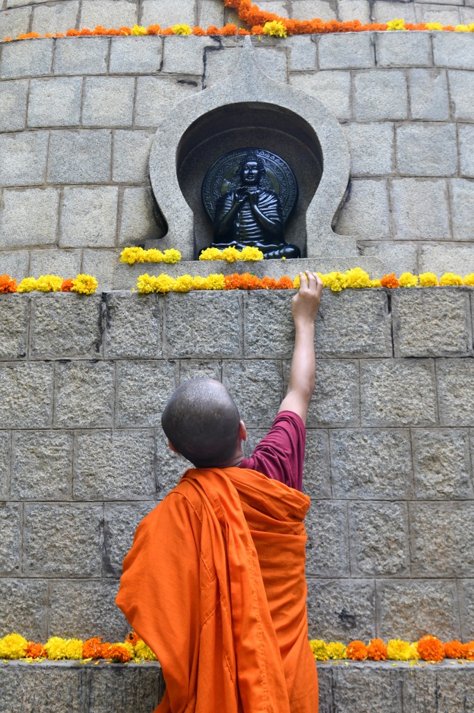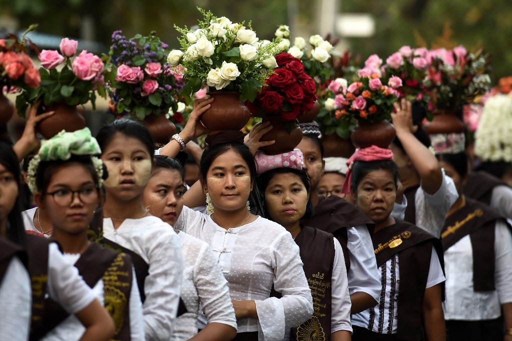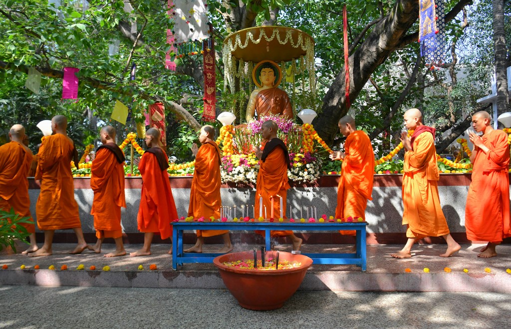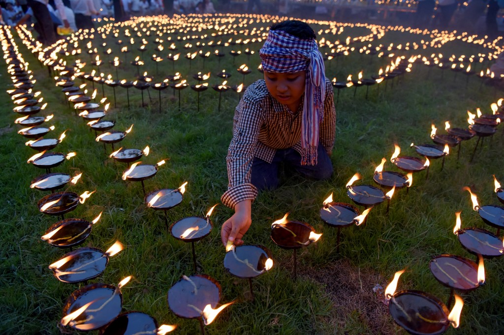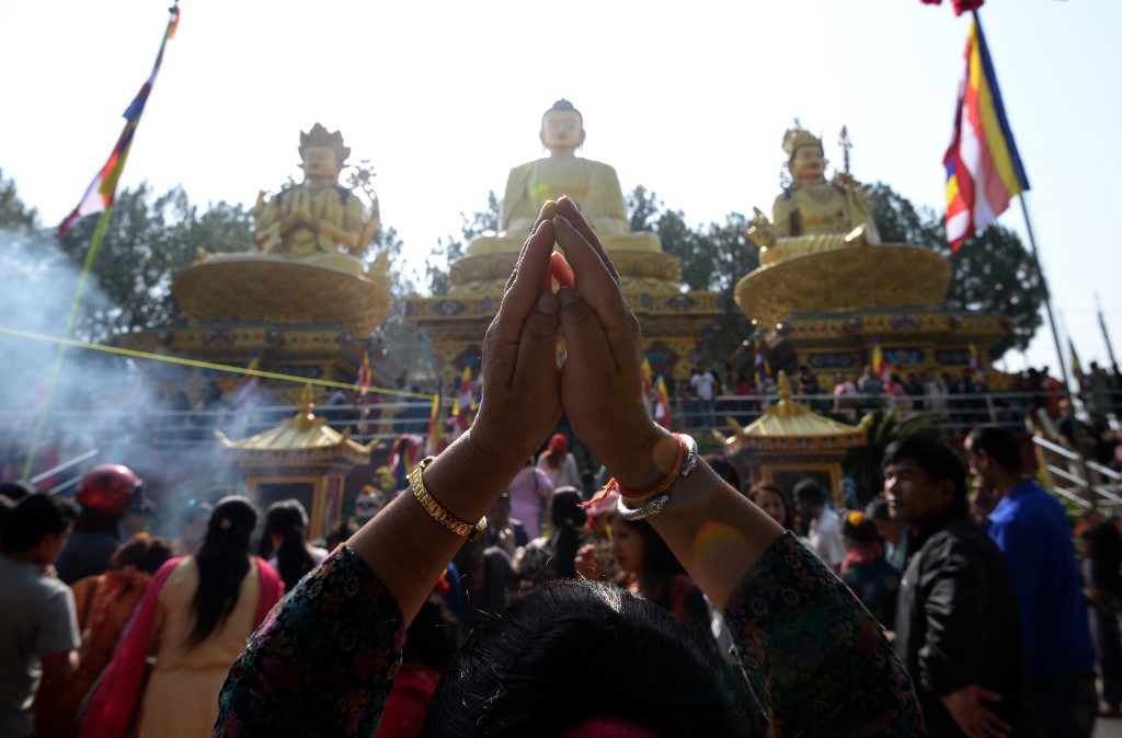 Buddhist monk prays on the eve of Buddha's birthday also known as Vesak celebrations, at Borobudur temple in Magelang, Central Java province, on May 18, 2019. Buddhists are celebrating Vesak, which commemorates the birth of Buddha, his attaining enlightenment and his passing away on the full moon day of May which falls on May 18 this year. OKA HAMIED / AFP