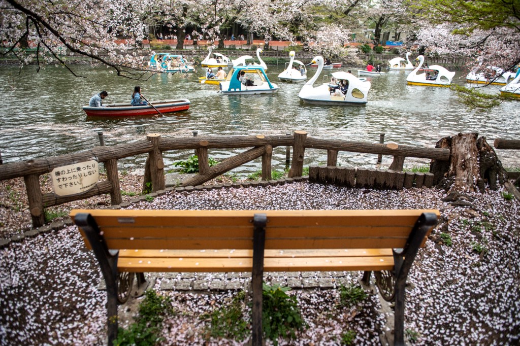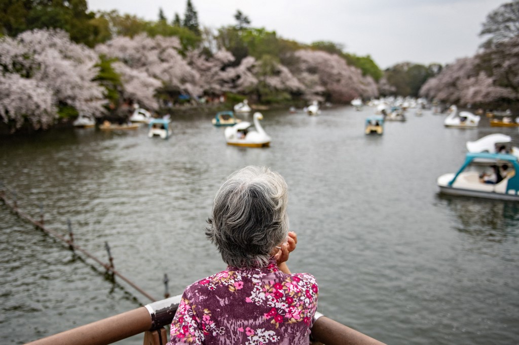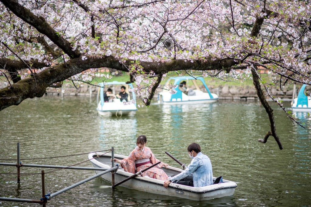 People ride boats watching cherry blossoms at Inokashira Park in Tokyo on March 30, 2021. Philip FONG / AFP