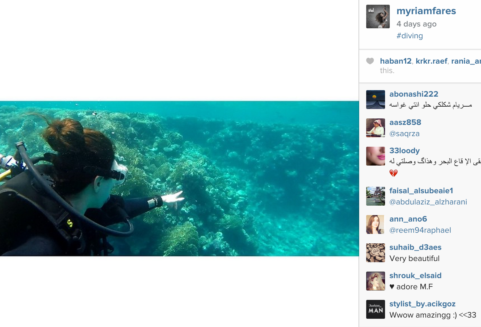 Published May 10th, 2015 - 07:42 GMT View as a slider View as a list Deep into the ocean! Myriam Fares takes a diving trip on her birthday! (Instagram) Deep into the ocean! Myriam Fares takes a diving trip on her birthday! (Instagram) You may also like Subscribe Sign up to our newsletter for exclusive updates and enhanced content Subscribe Now Subscribe Sign up to get Al Bawaba's exclusive celeb scoops and entertainment news LatestPopular Iran confirms intelligence chief killed as Israeli assassination campaign widens Israel strikes Iran’s South Pars gas field Spider-Man: Brand New Day trailer drops: Upcoming villains revealed Israeli spy! Who's the suspicious man behind Ali Larijani? Courtois Injury Raises Serious Concern at Real Madrid Loading content ...