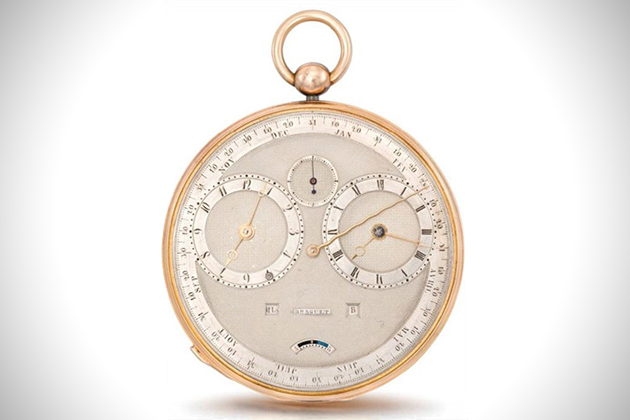 Breguet No. 160 at $30 million: The watch included every known complication at the time, including a thermometer, chime, and perpetual calendar. The watch was on display at the L.A. Mayer Museum in Jerusalem until it was stolen in 1983. (pinterest.com)