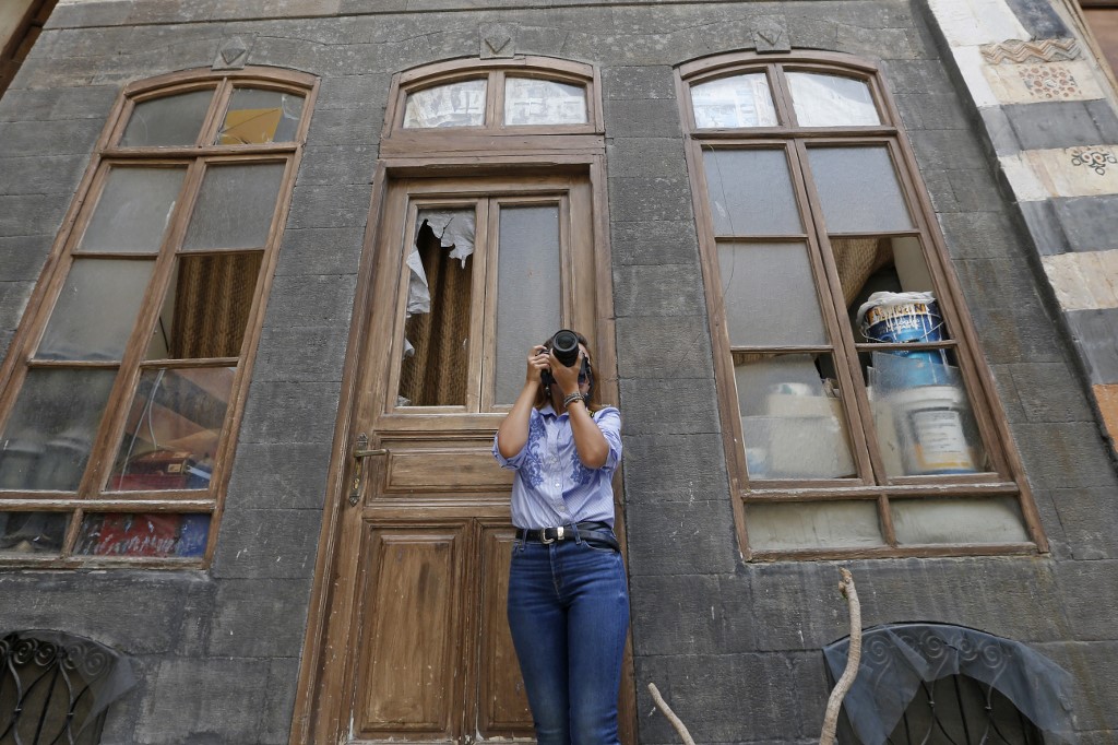 Rania Kataf, 35-year-old Syrian, captures images of the city's famed houses for her digital archive in the old part of Syria's capital Damascus on October 28, 2020. The old city of the Syrian capital is famed for its elegant century-old houses, usually two storeys built around a leafy rectangular courtyard with a carved stone fountain at its centre.LOUAI BESHARA / AFP