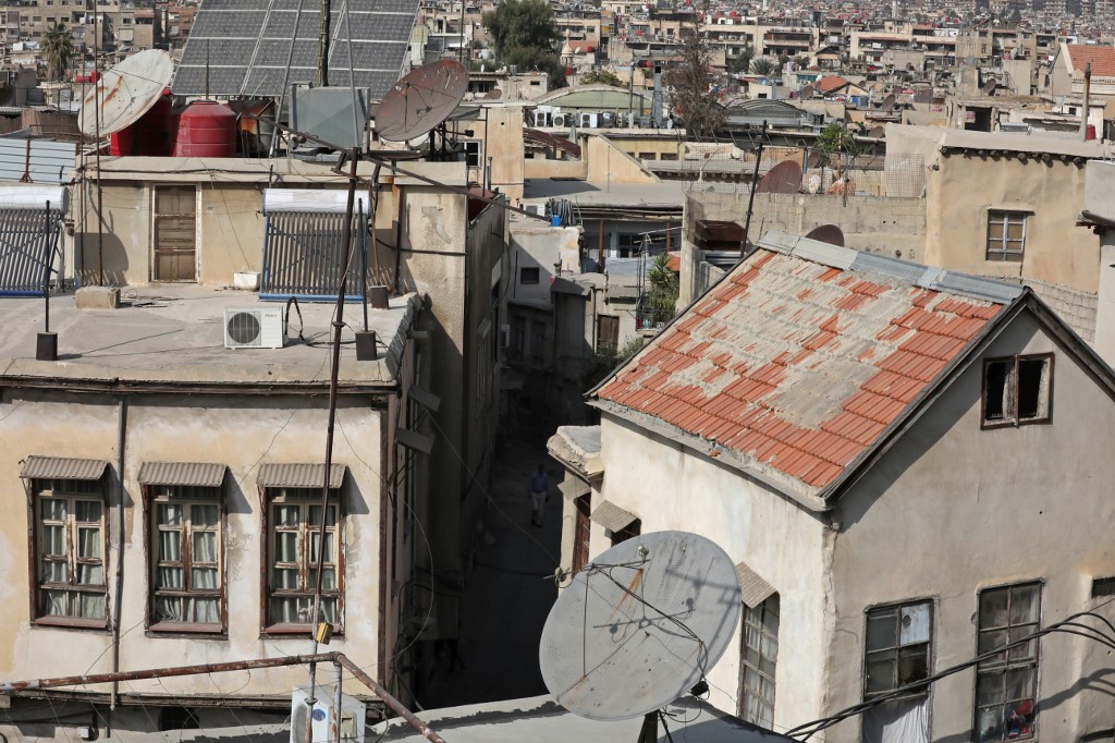 A partial view shows the old part of Syria's capital Damascus on October 28, 2020. The old city of the Syrian capital is famed for its elegant century-old houses, usually two storeys built around a leafy rectangular courtyard with a carved stone fountain at its centre. While the capital has been largely spared the violence of Syria's almost ten-year war, several of these traditional homes have been abandoned by their owners or damaged in the conflict. LOUAI BESHARA / AFP