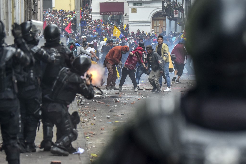 Fierce clashes started between police and protesters outside the parliament building in Quito, the capital of Ecuador, after almost one week of rallies. It prompted President Lenin Moreno to impose a curfew.