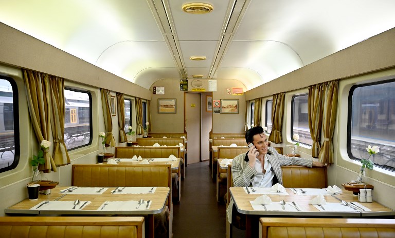 Elvis fans sit on a train after leaving Central station to head to The Parkes Elvis Festival, in Sydney on January 10, 2019. The Parkes Elvis Festival is an annual event celebrating the music and life of Elvis Presley in the New South Wales town of Parkes. PETER PARKS / AFP