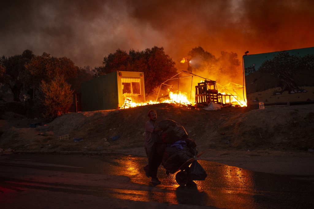 The first fire destroyed the official part of the camp, which housed roughly 4,000 people, ministers said. Another 8,000 lived in tents and makeshift shelters around its perimeter, many of which were badly damaged.