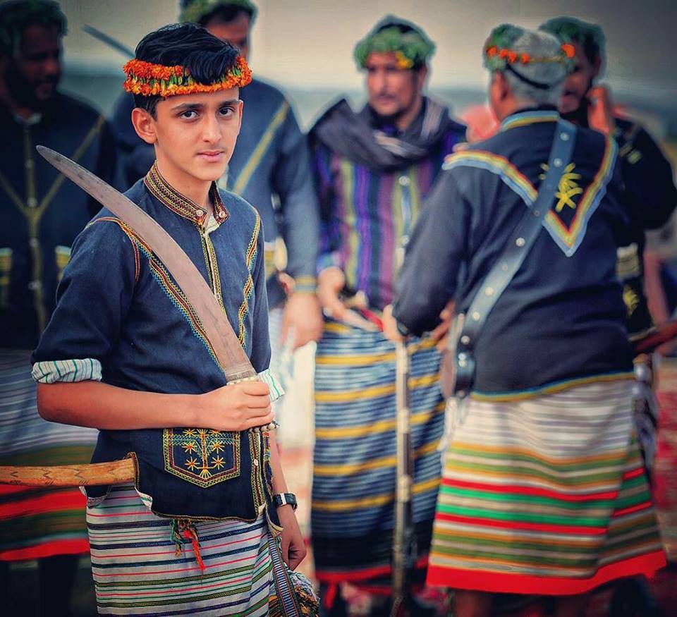 'Flower men', a tribe of people descended from the ancient Tihama and Asir groupings and whose traditions, most strikingly the garlands of herbs and blooms they wear, date back more than two millennia. They go into the foothills of the Habala Mountains every morning in search of fresh herbs for their garlands.