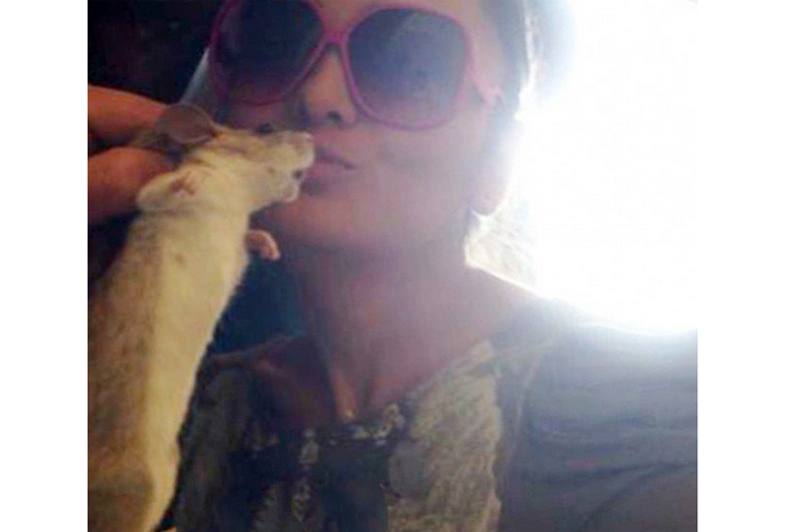 Gimme a kiss: Randa al Buhairi gives a hamster a peck on the cheek! (Image: Al Jaras Magazine)