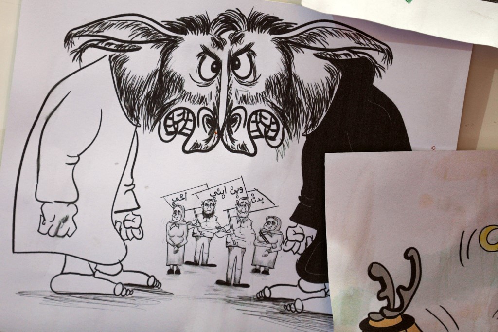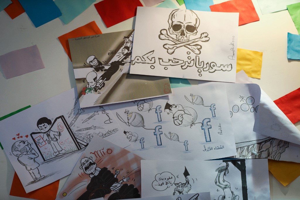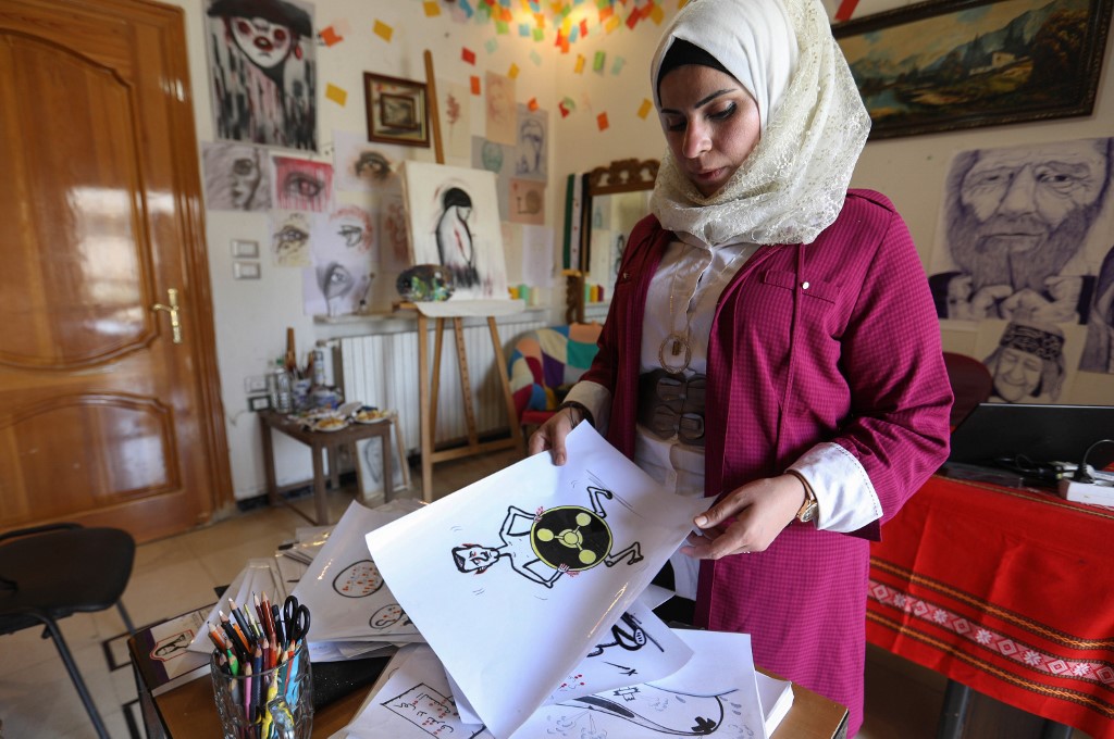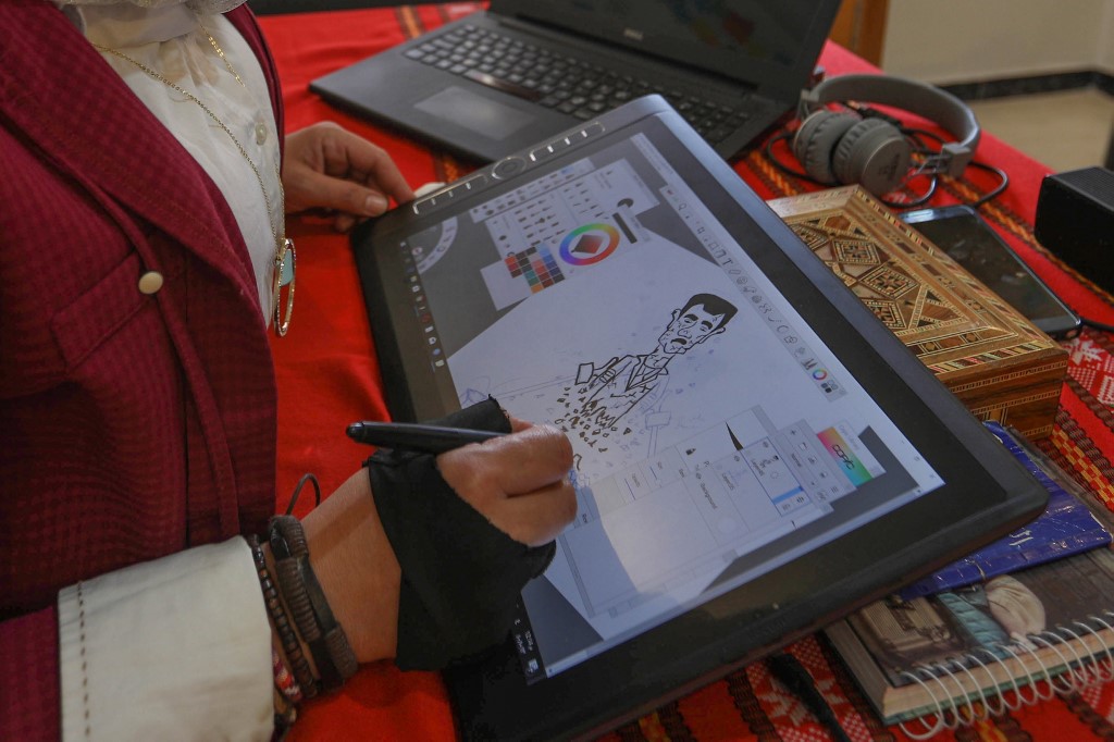 In war-torn northwest Syria, cartoonist Amani al-Ali takes her pen to the screen to sketch life in the embattled opposition bastion of Idlib. Omar HAJ KADOUR / AFP
